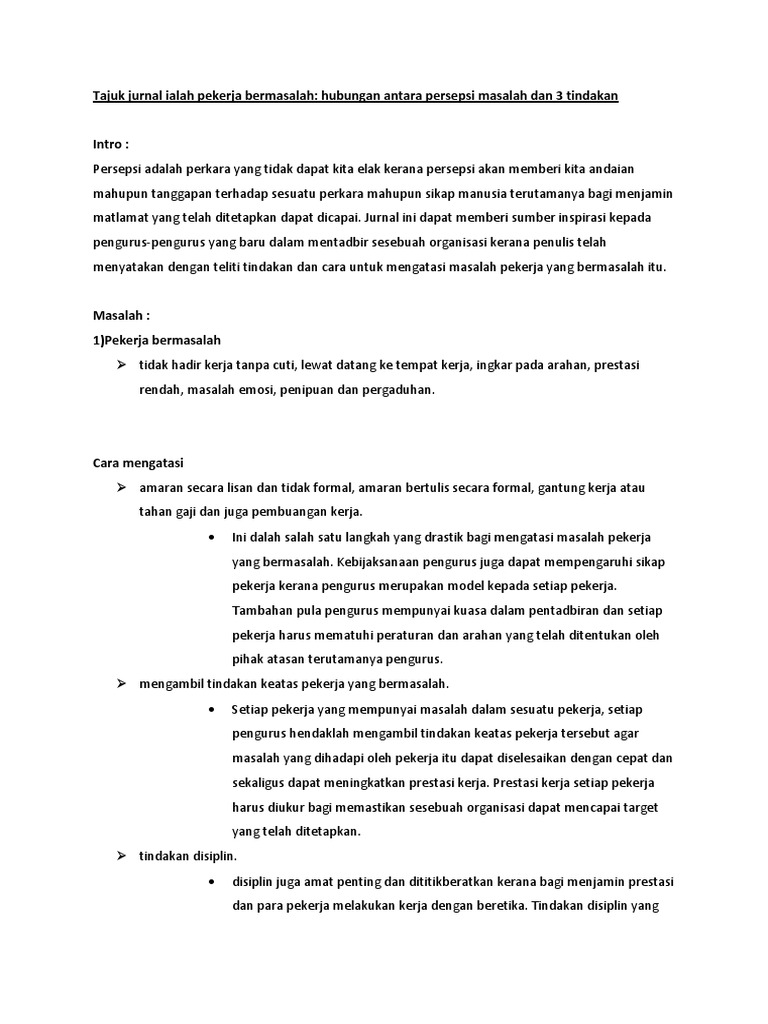 Pekerja Bermasalah Dan Cara Mengatasi Pdf